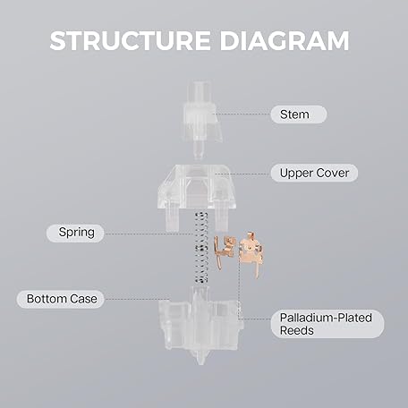 Thông tin sản phẩm KiiBoom Linear 55gf Crystal Mechanical Keyboard Switch, 5 Pin Mechanical Switch with PC Housing, Nylon Stem, 35 Pieces for Gaming DIY Keyboard