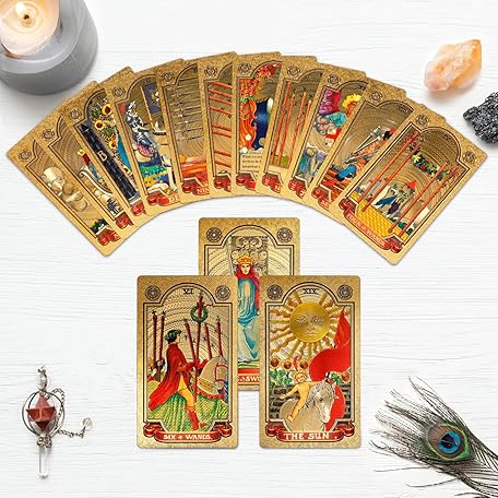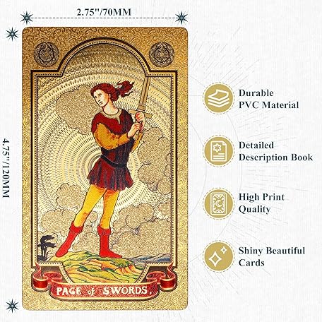 Sản phẩm KIINO 78 Gold foil Tarot Cards with Guide Book Tarot Deck for Beginners and Professional Player with Box Tarot PVC Durable Waterproof Wrinkle Resistant đang được bán với giá ưu đãi là $13.0037 tại nước Mỹ.