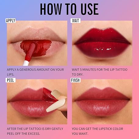 • KIMUSE Tattoo Peel & Reveal Lip Stain, Waterproof Long Lasting Peel Off Lip Liner Tattoo, Non Stick Color Peel Off Mask Lip Gloss Makeup