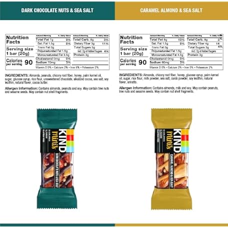Thông tin sản phẩm KIND Bar Minis, Variety Pack, Dark Chocolate Nuts and Sea Salt, Caramel Almond Sea Salt, Dark Chocolate Cherry Cashew Healthy Snacks, Gluten Free, Low Calorie Snacks, Low Sugar, 30 Count