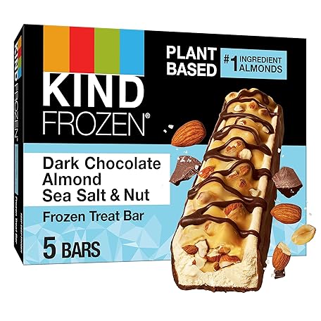 KIND FROZEN Plant Based Frozen Treat Bar, Dark Chocolate Almond Sea Salt & Nut Treat Bars, 5 Pack, 1.6 Oz Bars