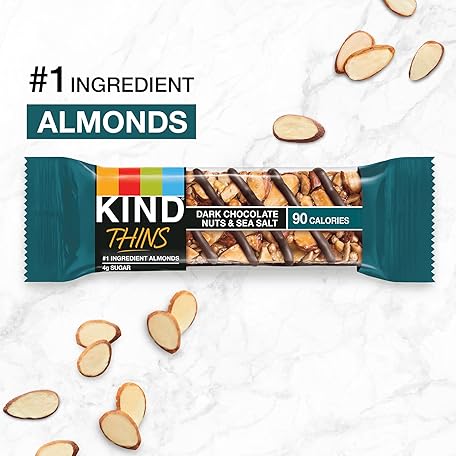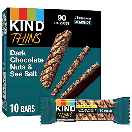Thông tin sản phẩm KIND THINS Dark Chocolate Nuts & Sea Salt Bars (Now with Peanuts), Gluten Free, 4g Sugar, 0.74 oz bars, 10 count