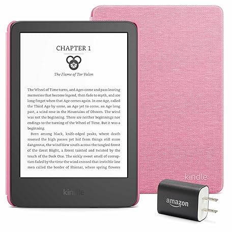 Kindle Essentials Bundle including Kindle (2024 release) - Black, Fabric Cover - Rose, and Power Adapter