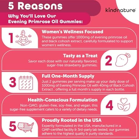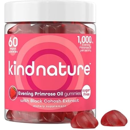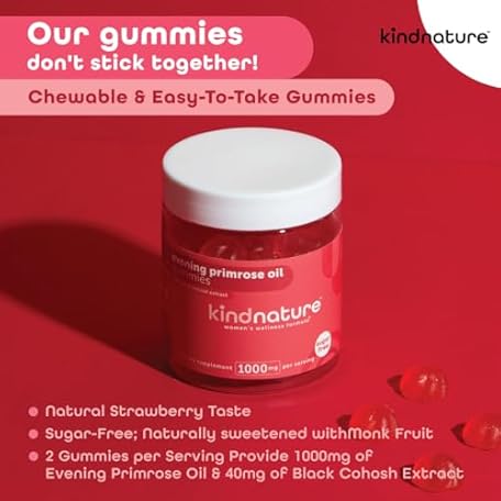 Thông tin sản phẩm kindnature Evening Primrose Oil Gummies for Women – 1000mg with Black Cohosh Extract – Hormonal Balance, PMS & Menopause Support – Vegan, Sugar-Free, Non-GMO