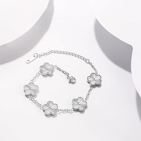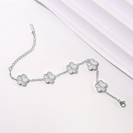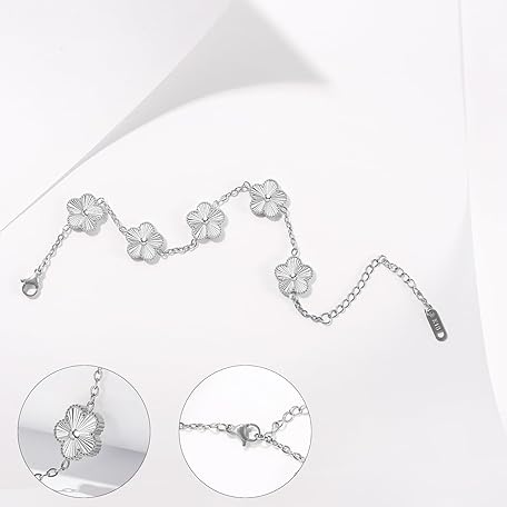 KINFERTE 18K Gold Plated Double Sided Clover Bracelet for Women - Lucky Flower Link Bracelets Trendy Jewelry Gifts for Women,Wife, Girlfriend, Mom, Sister, Bestie, Grandma