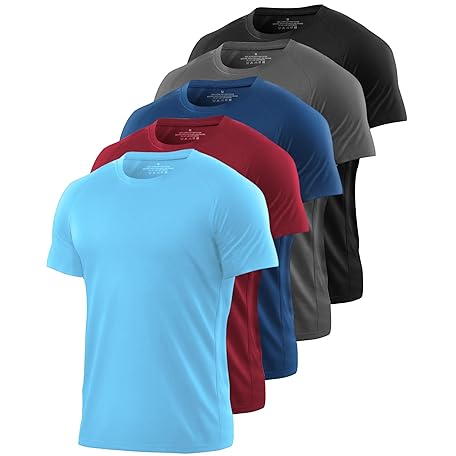 Kinglaman Mesh Workout Shirts for Men Dry Fit Gym Shirts Quick Dry Athletic Short Sleeve Sports T-Shirt Moisture Wicking 1 Black 1 Gray 1 Blue 1 Light Blue 1 Wine Large