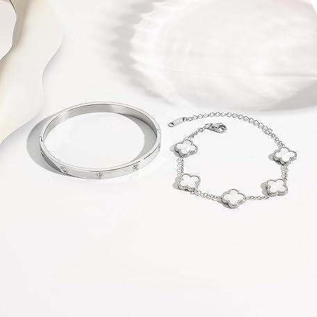 Sản phẩm KIOGIU Women's Bracelet Gold Plated Cuff Bangle Clover Bracelet Set for Women Four Leaf Lucky Bracelets Jewelry oval Bangle Witness the Gift of Love đang được bán với giá ưu đãi là $14.8676 tại nước Mỹ.