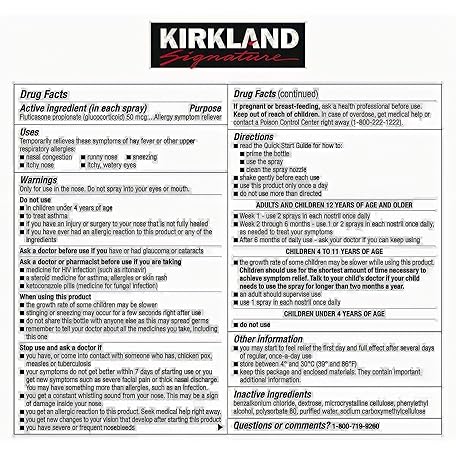 Thông tin sản phẩm KIRKLAND Signature Aller-Flo Fluticasone Propionate (Glucorticoid) 5 Bottles x 120 Metered Sprays 0.54 Fl OZ per Bottle (15.8 mL x 5) 2.70 OZ Total (79 mL Total) 600 Total Sprays Total, 1-Pack