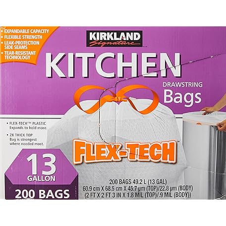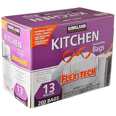 Sản phẩm Kirkland Signature Drawstring Kitchen Trash Bags - 13 Gallon - 200 Count đang được bán với giá ưu đãi là $43.5891 tại nước Mỹ.
