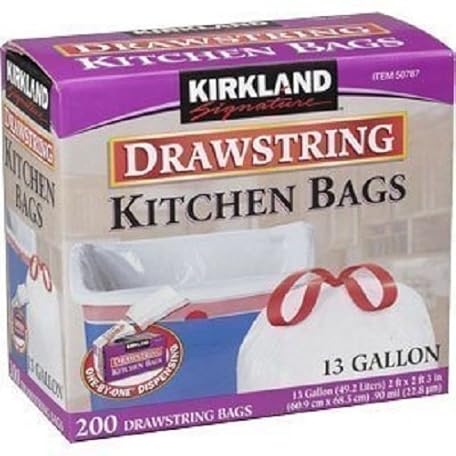Sản phẩm KIRKLAND Signature Drawstring Kitchen Trash Bags - 13 Gallon, 200 Count đang được bán với giá ưu đãi là $33.681 tại nước Mỹ.
