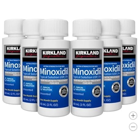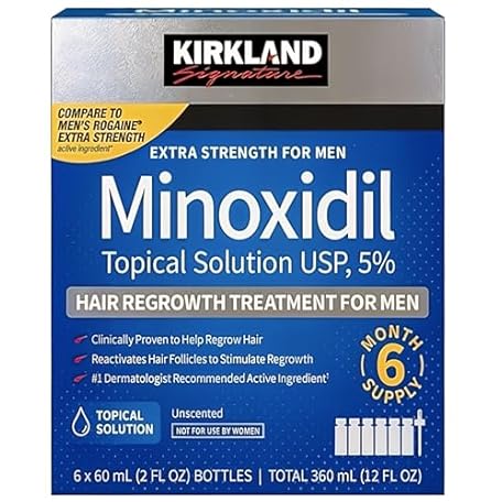 • KIRKLAND Signature Minoxidil 5% Hair Regrowth Treatment for Men | 6 Months Supply | Topical Solution | Extra Strength | Clinically Proven | Unscented Drops | Dropper Included