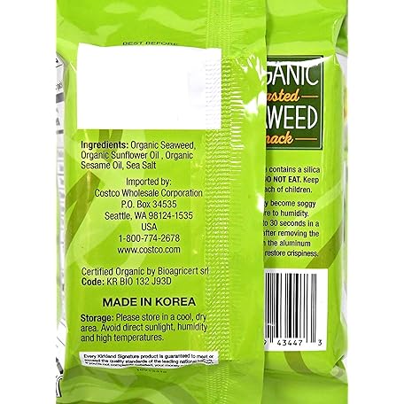 Sản phẩm Kirkland Signature Organic Roasted Seaweed Snack, 0.6 Ounce (10 Count) (2 Pack) đang được bán với giá ưu đãi là $39.2291 tại nước Mỹ.