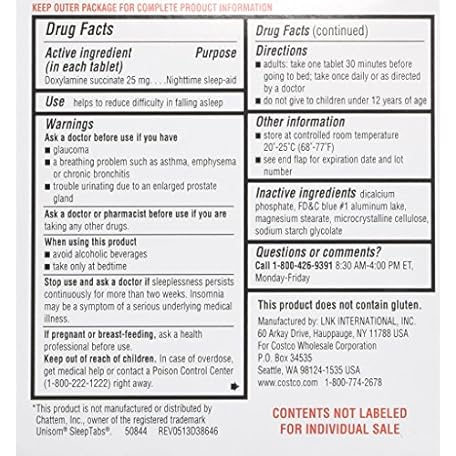 Sản phẩm Kirkland Signature Sleep Aid Doxylamine Succinate 25 Mg, 2 pack (192 Tablets) đang được bán với giá ưu đãi là $13.5487 tại nước Mỹ.