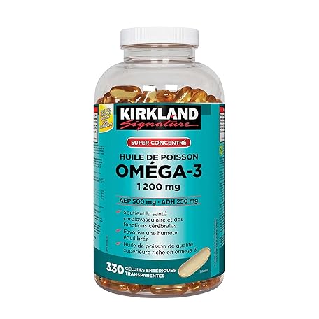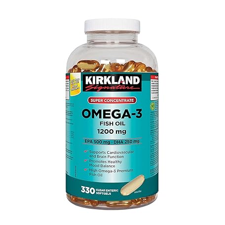 Sản phẩm Kirkland Signature Super Concentrate Omega-3 Fish Oil 1200mg, EPA 500/DHA 250mg, 330 Clear enteric softgels đang được bán với giá ưu đãi là $43.7962 tại nước Mỹ.