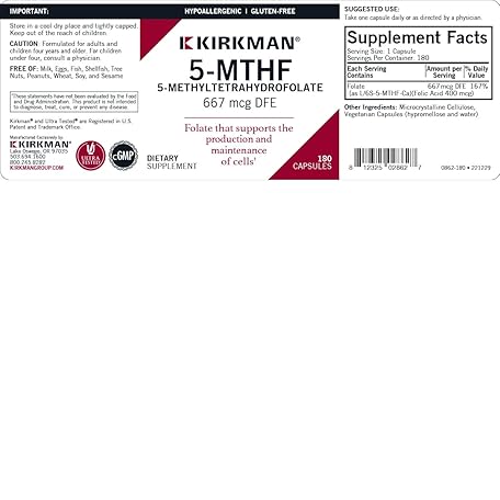 Sản phẩm Kirkman - 5-MTHF - 5-METHYLTETRAHYDROFOLATE - Folate to Support Maintenance of Cells* đang được bán với giá ưu đãi là $26.4325 tại nước Mỹ.