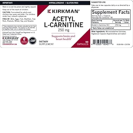 Sản phẩm Kirkman - Acetyl L-Carnitine 250 mg - 90 Capsules - Supports Sustained Cellular Energy Production - Hypoallergenic đang được bán với giá ưu đãi là $26.705 tại nước Mỹ.