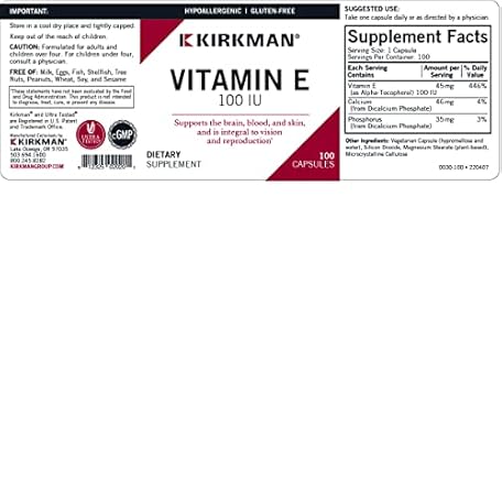 Sản phẩm Kirkman Vitamin E 100 IU - Hypoallergenic || 100 Vegetarian Capsules || Supports Immune System || Gluten Free || Casein Free || Soy-Free đang được bán với giá ưu đãi là $17.985 tại nước Mỹ.