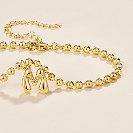 Sản phẩm KissYan Beaded Initial Bracelets for Women, 14K Gold Plated Bubble Balloon Letter Monogram Charm Bracelets Capital Alphabets from A-Z Dainty Jewelry đang được bán với giá ưu đãi là $10.8891 tại nước Mỹ.