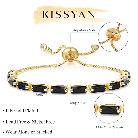 Thông tin sản phẩm KissYan Tennis Bracelet for Women, 14K Gold Plated Cubic Zirconia Adjustable Slider Bracelets Trendy Jewelry Gift