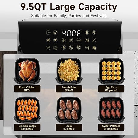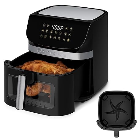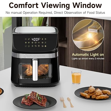 Thông tin sản phẩm Kitchen Elite Air Fryer Oven with Stainless Steel, 9.5QT Large Airfryer, 9 1-Touch Cooking Presets, 400°F Temp, Large Window, Nonstick, Panel Tilt Friendly, Bake, Roast, Reheat, Dehydrate, 1700W