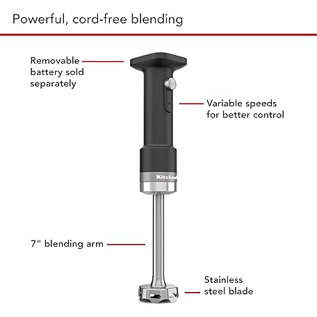 Thương hiệu KitchenAid là cái tên nổi tiếng được rất nhiều khách hàng trên thế giới chọn lựa. Với kiểu dáng đẹp mắt, sang trọng, sản phẩm KitchenAid Go Cordless Hand Blender - battery included, KHBRV71, Black Matte là sự lựa chọn hoàn hảo nếu bạn đang tìm mua một món cho riêng mình.