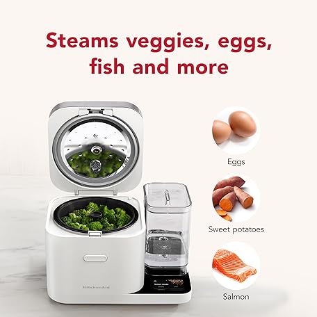 KitchenAid Grain and Rice Cooker 8 Cup with Automatically Sensing Integrated Scale + Water Tank, KGC3155, Porcelain White