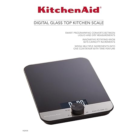 Thương hiệu KitchenAid là cái tên nổi tiếng được rất nhiều khách hàng trên thế giới chọn lựa. Với kiểu dáng đẹp mắt, sang trọng, sản phẩm KitchenAid KQ908 Glass Surface 11 Pound Capacity Digital Kitchen and Food Scale, Black là sự lựa chọn hoàn hảo nếu bạn đang tìm mua một món cho riêng mình.