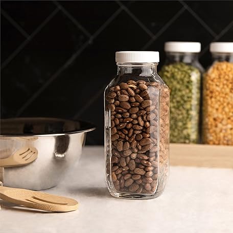 Thông tin sản phẩm kitchentoolz 16oz Square Glass Milk Bottle with Lid - Airtight Vintage Reusable Dairy Drinking Jars Containers for Milk, Yogurt, Smoothies, Juice, Kefir, & Water -2 Pack 16 oz Glass Bottles with Lids