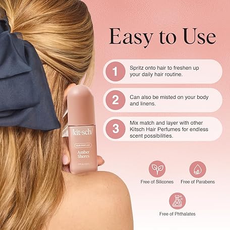 Thông tin sản phẩm Kitsch Hair Perfume for Women - Amber Shores | Clean, Deodorizing & Patented Odor-Eliminating Technology Hair Spray & Body Mist - Freshen Hair, Body & Pillows - Woody Aquatic Scent - 50mL