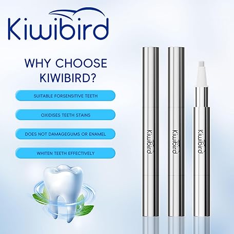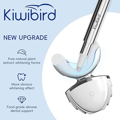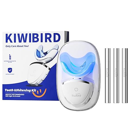KIWIBIRD Teeth Whitening Kit for Sensitive Teeth – 3 Gel Pens, LED Light with Wireless Charging Case, IPX7 Waterproof, Enamel-Safe at-Home Dental Care Tool