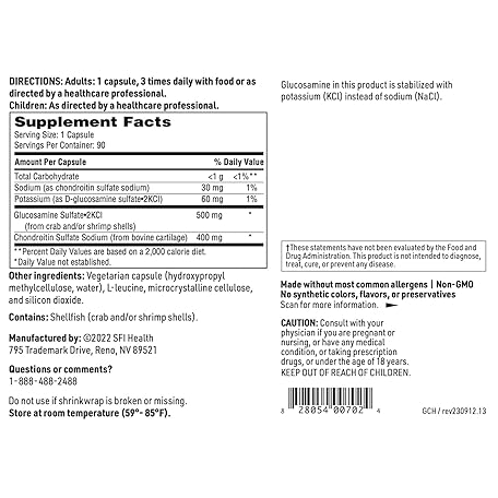 Thông tin sản phẩm Klaire Labs Glucosamine Chondroitin - A Popular Combination for Joint Support, Soy & Dairy-Free (90 Capsules)
