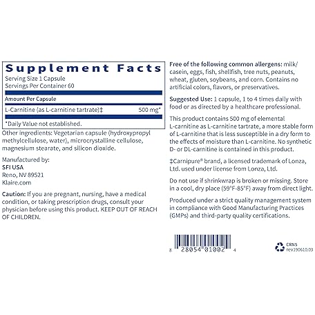 Sản phẩm Klaire Labs SFI Health L-Carnitine Tartrate - 500 mg Amino Acid, Stabilized L-Carnitine - No Synthetic D-Carnitine (60 Capsules) đang được bán với giá ưu đãi là $50.1291 tại nước Mỹ.