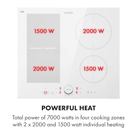 KLARSTEIN Induction Hob, 7000W Electric Hob Induction Cooker, 4 Ring Electric Pan Hob, Built-In Table Top Cookers w/ 4 Hobs, Touch Control, Induction Heater Cooktops, Electric Hot Plates for Cooking