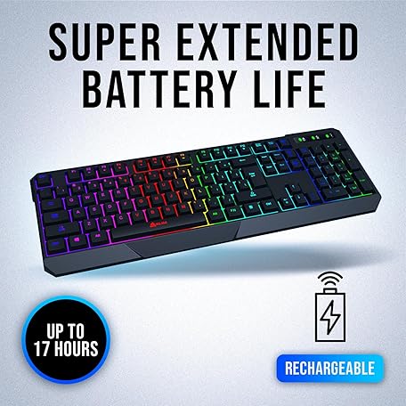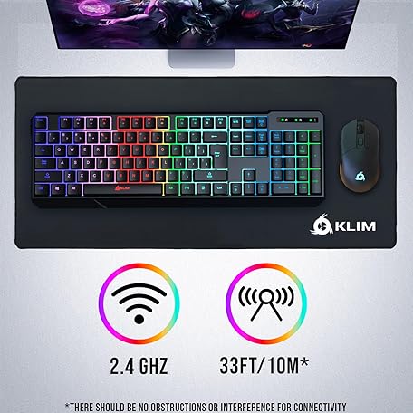 Thông tin sản phẩm KLIM Chroma Wireless Keyboard – RGB Backlit Gaming, Rechargeable Battery, PC Keyboard, Durable & Water-Resistant, Compatible with PS4, PS5 & Mac - Black