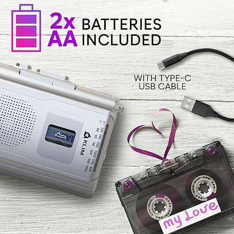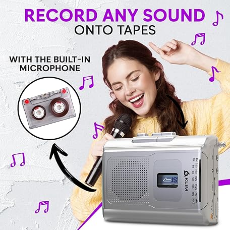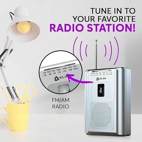 • KLIM K8 Cassette Tape Player Portable - Cassette Recorder - New Version - AM/FM - Built-in Microphone & Speaker - Headphone Jack & Earphones - Silver