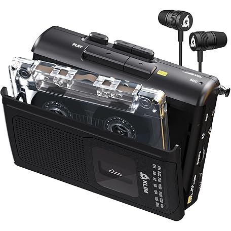 KLIM K8 Cassette Tape Player Portable with F1 Headphones - Cassette Recorder - New Version - AM/FM Walkman - Built-in Microphone & Speaker - Headphone Jack & Earphones - Black