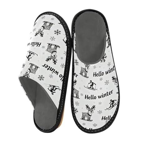 KLL Hello Winter Deer Black and White Woman Slippers Memory Foam Woman's Slippers