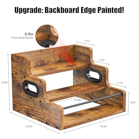 Thông tin sản phẩm KLM Liquor Bottle Display Shelf, Coffee Syrup Rack Organizer, 3 Step Countertop Liquor Wine Rack, mini bar,liquor cabinet, Home Retro Bar Shelf Stand for Liquor Whiskey, Spirits