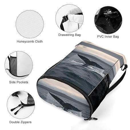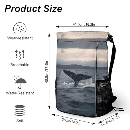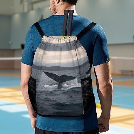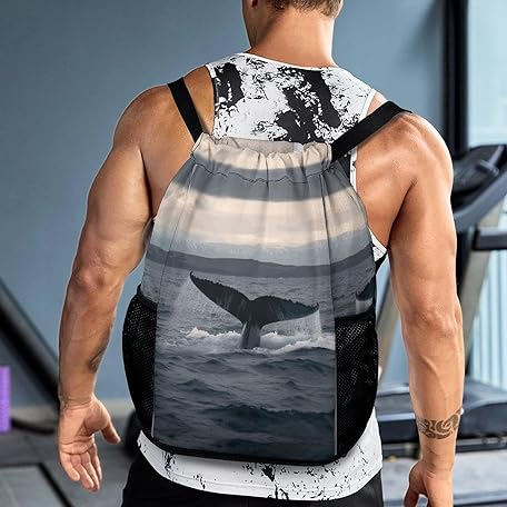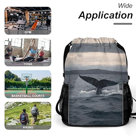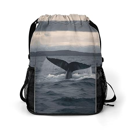 KLSVTMEA Drawstring Backpack, Humpback Whale Tail Ocean Printed Lightweight Rope Sports Bag, Gym Bag Backpack For Men Women Is Suitable For Sports, Travel, Fitness, And More