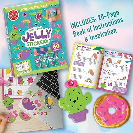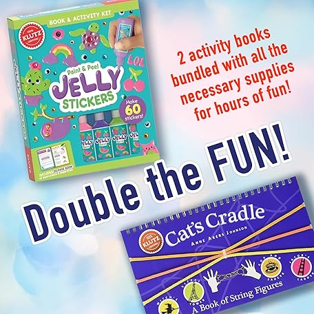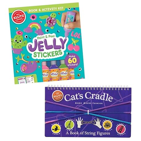 Klutz Kids Activity Bundle, Paint & Peel Jelly Stickers Kit with 60 Stickers, Cat's Cradle String Figures Book