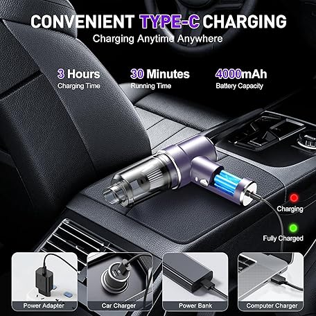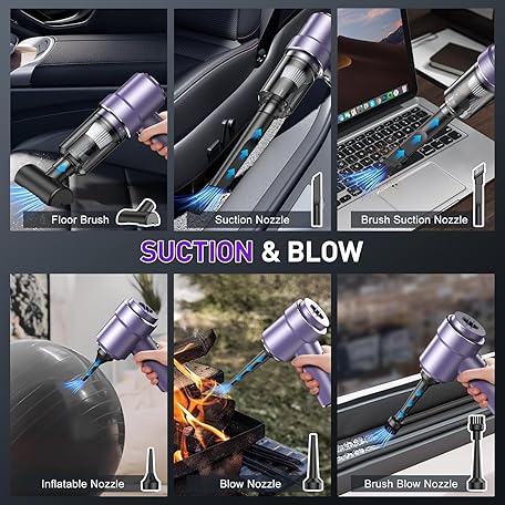 KMM Handheld Car Vacuum Cleaner, 11000PA Vacuum Cleaner & Air Duster, 120W High Power Vacuum Portable Cordless, Hand Held Vacuum Rechargeable with Multi-Nozzles & LED Light for Home, Car, Office