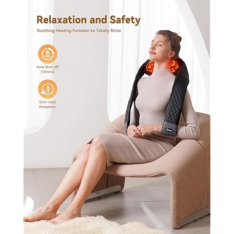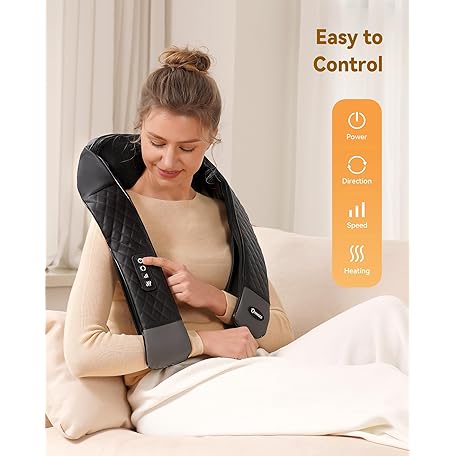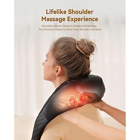 Thông tin sản phẩm KNQZE Shiatsu Neck Massager with Heat, Back and Shoulder Massager, 4D Deep Tissue Kneading Massage Pillow for Shoulder, Back, Body Muscle Pain Relief, Gifts for Women Men Mom Dad Friend, Corded Use