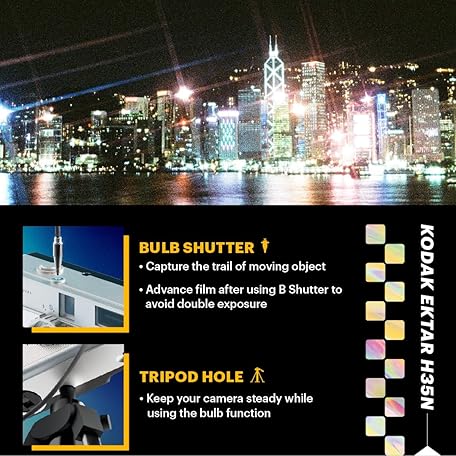 Thông tin sản phẩm KODAK EKTAR H35N Half Frame Film Camera, 35mm, Reusable, Focus-Free, Bulb Function, Built-in Star Filter, Coated Improved Lens (Film & AAA Battery are not Included) (Glazed Blue)