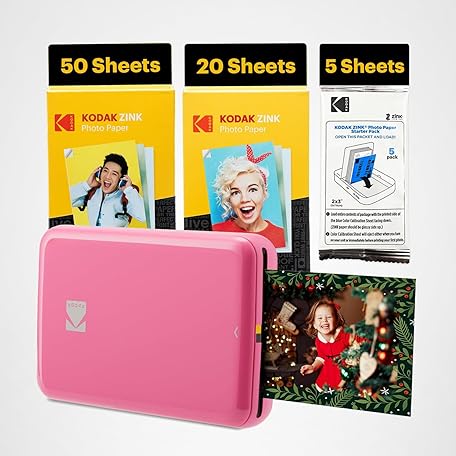 • Kodak Step Instant Smartphone Photo Printer - 75 Sheets Bundle - Portable Mini Color Wireless Mobile Printer - Zink 2x3” Sticky-Back Photos - Bluetooth Compatible with Smart Devices - Fun App -Pink