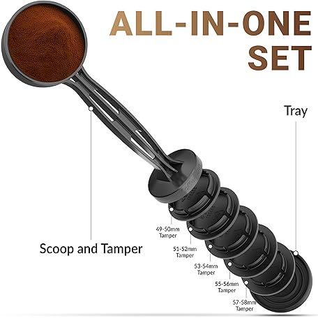 Thông tin sản phẩm Koffee Zen Universal Espresso Tamper Kit (49-58mm) – 7-Piece Set with Scoop & Drip Tray – Fits DeLonghi, Breville, Gaggia, Mr. Coffee – Dishwasher Safe