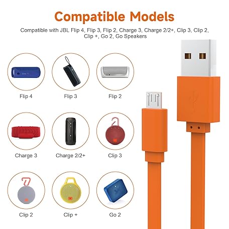 Thông tin sản phẩm Koffmon 2-Pack Charging Cable USB C and Micro USB Cord Compatible with JBL Flip 6 Flip 5 Flip 4 Charge 4 Charge 3 Xtreme 4, Xtreme 3, Go 3, GO Wireless Speakers(3.3ft/Orange)