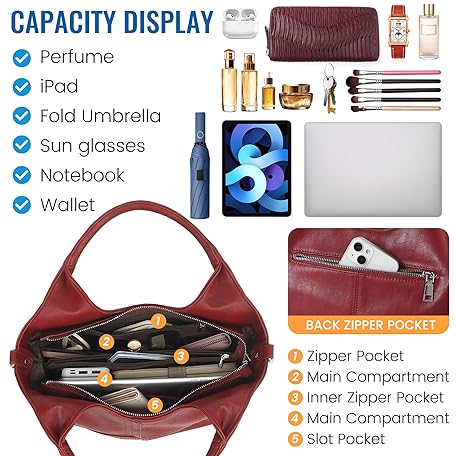 Thông tin sản phẩm KOGTLA Vegan Leather Purses for Women with Detachable Satchel Strap, Ladies Handbags, Tote Hobo Bags with Top Handle