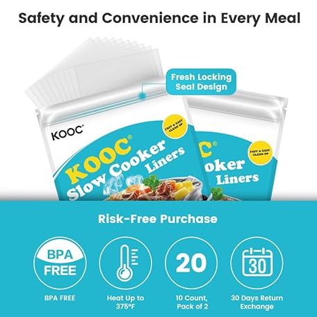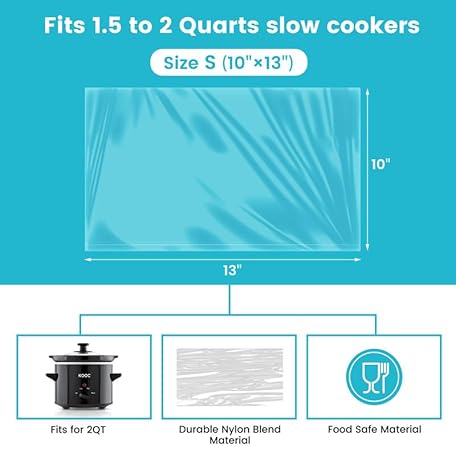 Sản phẩm KOOC Slow Cooker Liners 10"x13" 20 count Small Size Disposable Plastic Bags Pot Liners Brunch Cooking Bags Fit 1.5 qt to 2 qt Pot BPA Free đang được bán với giá ưu đãi là $8.2622 tại nước Mỹ.