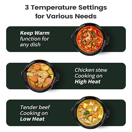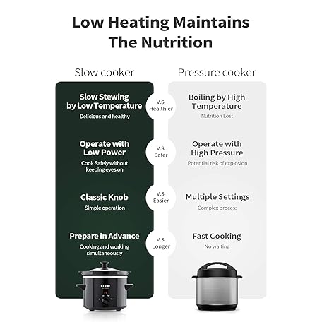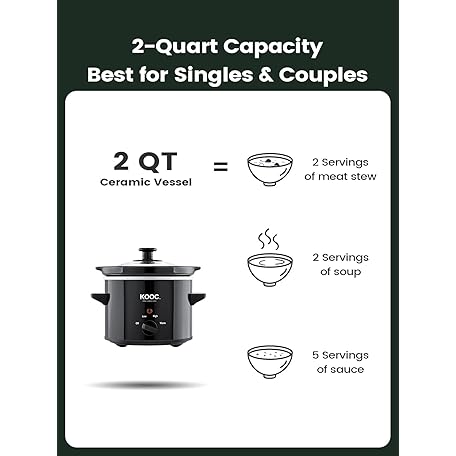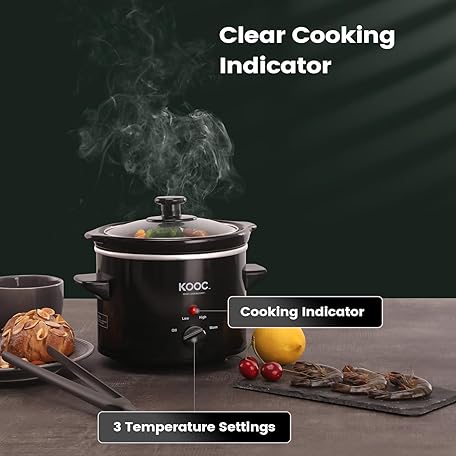 Thông tin sản phẩm KOOC Small Slow Cooker, 2-Quart, Free Liners Included for Easy Clean-up, Upgraded Ceramic Pot, Adjustable Temp, Nutrient Loss Reduction, Stainless Steel, Black, Round…