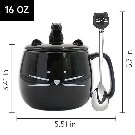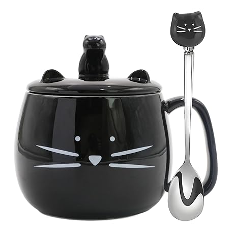 Sản phẩm Koolkatkoo Ceramic Cat Mug - Black Ceramic Coffee Cup, Coffee Mug with Lid and Spoon, Cute Kitty Design with Phone Holder, Gifts for Women Cat Lovers đang được bán với giá ưu đãi là $16.5571 tại nước Mỹ.